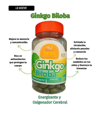 ¿Sientes que el cansancio te gana o te cuesta concentrarte? Descubre el poder natural del Ginkgo Biloba, el aliado perfecto para mejorar tu memoria y llevar tu enfoque al siguiente nivel 🚀. Olvídate de la pesadez en las piernas, ya que su fórmula avanzada estimula la circulación y combate el agotamiento diario 🏃♂️💨. Además, protege cada célula de tu cuerpo con su alto contenido de antioxidantes y dile adiós a esos molestos zumbidos en los oídos para recuperar tu bienestar total 👂✨. ¡Es momento de sentirte ligero, activo y con la mente más clara que nunca! 💎🙌