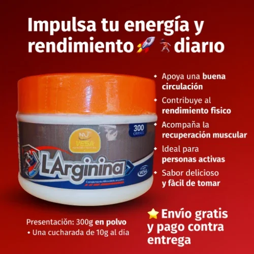 ¡Potencia tu rendimiento al máximo con L-Arginina Nu Vesa! 🚀 Este poderoso aminoácido es el aliado perfecto para quienes buscan llevar su energía y salud al siguiente nivel. Al ser un precursor clave del óxido nítrico, mejora la circulación sanguínea, favoreciendo una oxigenación muscular superior para entrenamientos más intensos y una recuperación envidiable. 💪✨ Ya sea para ganar resistencia, cuidar tu salud cardiovascular o mejorar tu vitalidad diaria, su formato en polvo de 300 gr te ofrece la pureza y versatilidad que necesitas. 🔋❤️ ¡Dale a tu cuerpo el impulso que merece y siente la diferencia en cada movimiento! ⚡🌟