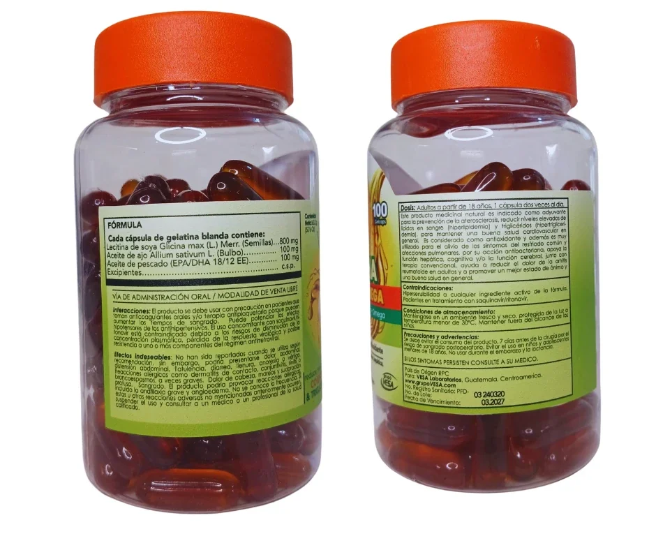 ¿Buscas bienestar integral en un solo paso? Descubre el poder de la Lecitina + Ajo + Omega, tu aliado perfecto para mantener un corazón fuerte y una mente brillante. Estas 100 cápsulas están diseñadas para ayudarte a reducir niveles de colesterol y triglicéridos, mientras protegen tu salud cardiovascular y cerebral. Además, gracias a sus propiedades antioxidantes y antimicrobianas, refuerzas tus defensas y apoyas la función de tu hígado. ¡No esperes más para sentirte con más vitalidad y energía cada día! 💪🧠✨